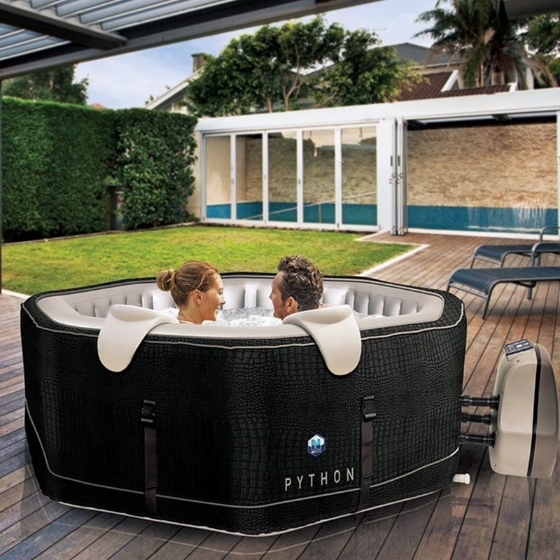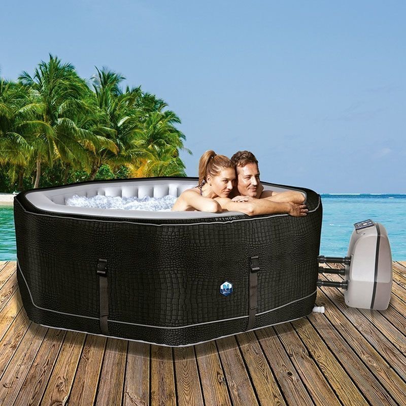 Jacuzzi-ul Python este potrivit pentru montare la exterior si poate acomoda 5-6 persoane simultan.