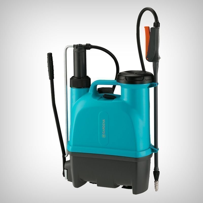 Aparat de stropit Gardena, pentru pomi si vita de vie. Are un rezervor cu capacitatea de 12 litri, este echipat cu tija telescopica, cu duza reglabila din metal. Orificiul de umplere este prevazut cu filtru de curatare, pentru ca impuritatile sa nu patrunda in rezervor si sa blocheze duza.