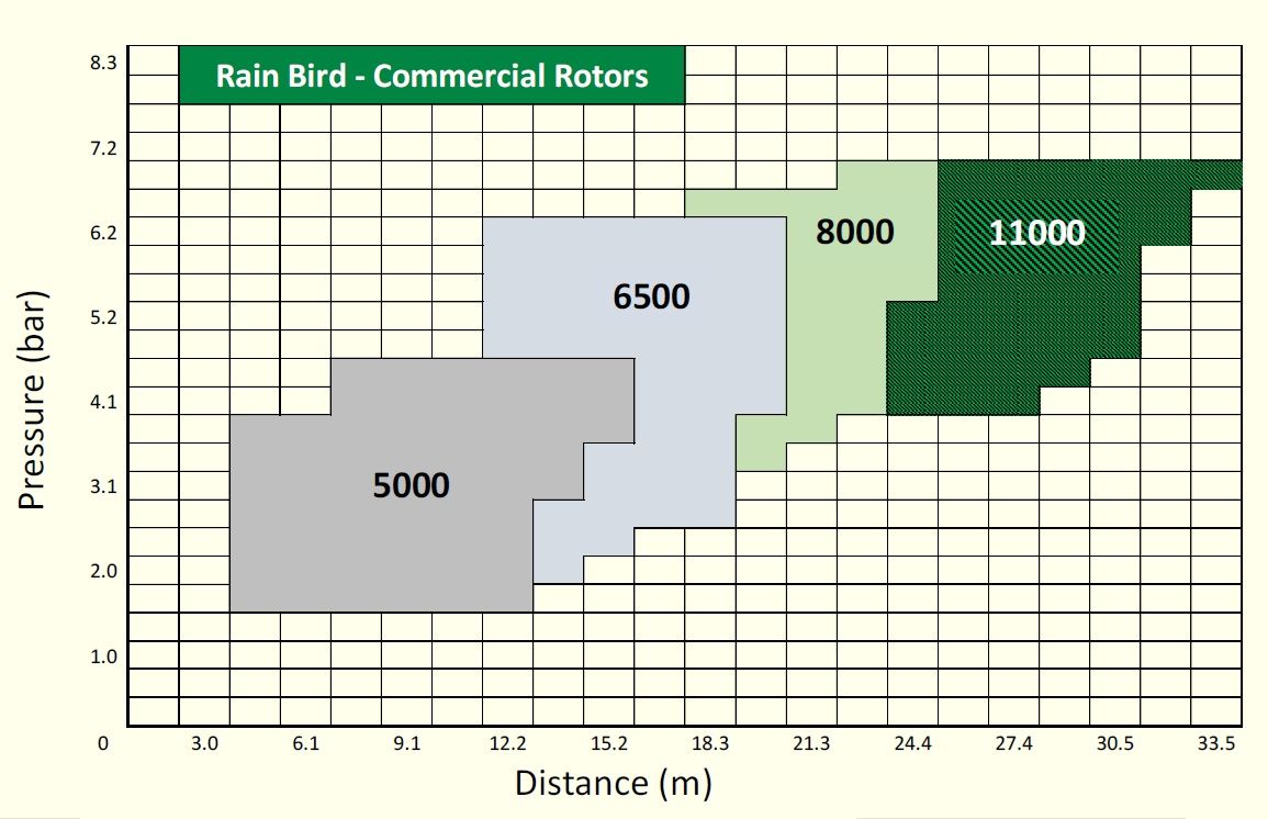 - Rază de udare: 21,3 m – 32,0 m (ideal pentru acoperire raza udare 32 metri).