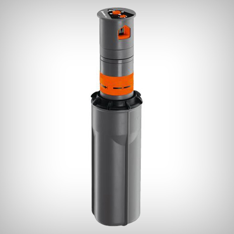 Aspersor telescopic Turbo T200 de la Gardena, pentru sisteme de irigatii impamantate, este potrivit pentru irigarea peluzelor de dimensiuni medii, pana la 200 mp.