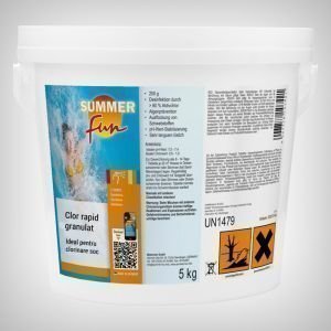 Pentru dezinfectarea piscinei poti folosi si clorul lent, care se pune in piscina saptamanal, sub forma de tablete, in dozator. Efectul lui este unul lent, asa cum ai intuit deja, asigurand o dezinfectare continua a apei. O alternativa a lui este oxigenul activ care, spre deosebire de clor are avantajul de a nu provoca mirosuri intepatoare, iritatii ale pielii, usturime a ochilor. Este o varianta mai sigura, dar costurile sunt mai ridicate decat in cazul tratarii cu clor. De retinut ca nu este in regula sa folosesti simultan clor si oxigen activ pentru ca nu, nu e ca in vorba cantecului – „unde-s multi puterea creste” – ci dimpotriva, cele doua isi anuleaza reciproc efectul, iar problema ramane.