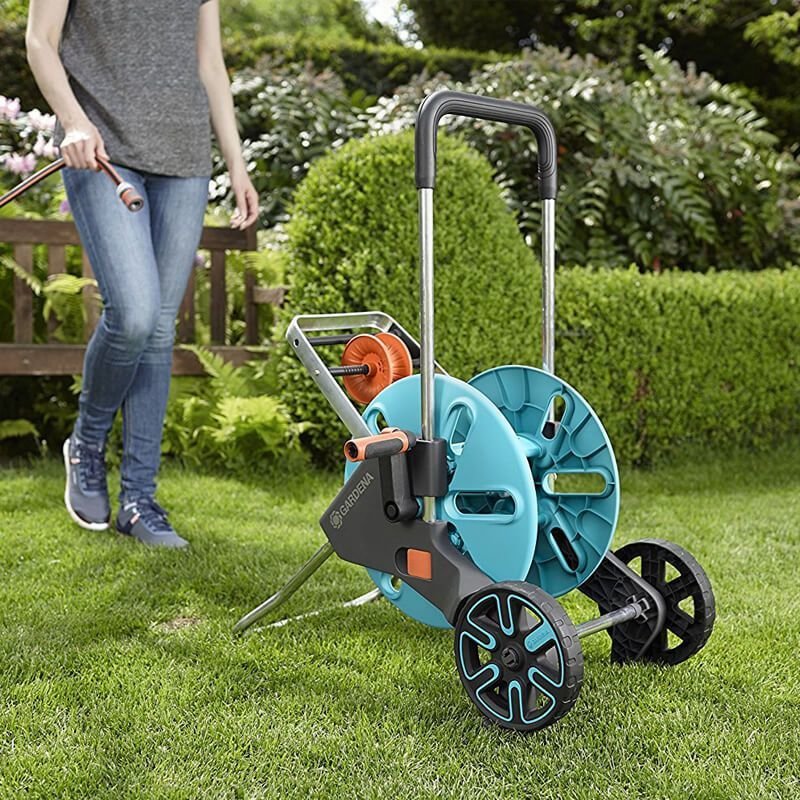 Caruciorul pentru furtun CleverRoll M Easy de la Gardena are un ghidaj comod al furtunului, astfel furtunul nu se rasuceste.