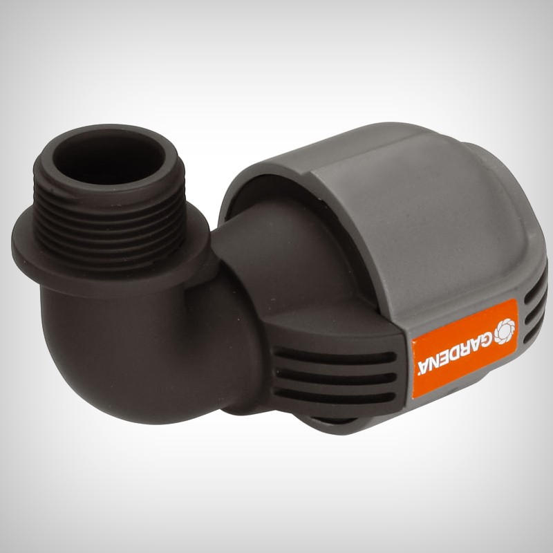 Ca element al sistemului de aspersoare GARDENA, conexiunea unghiulara 25 mm x filet exterior 3/4" are rolul de a conecta la capatul conductei aspersorul telescopic turbo T 380 (nr. articol 8205-29), aspersorul telescopic oscilant R 140 (nr. articol 1537-29) si aspersorul AquaContour telescopic automat pentru irigarea suprafetelor mari (nr. articol 1559-29).