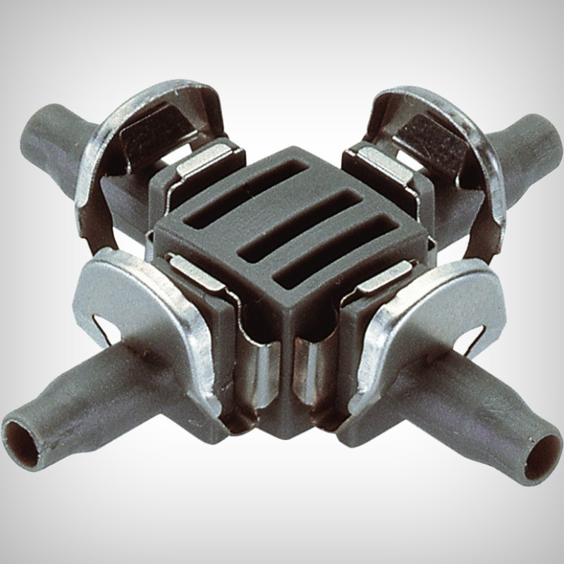 Cupla in cruce GARDENA face parte din sistemul de micropicurare Micro-Drip GARDENA si ajuta la bransarea conductei de alimentare.