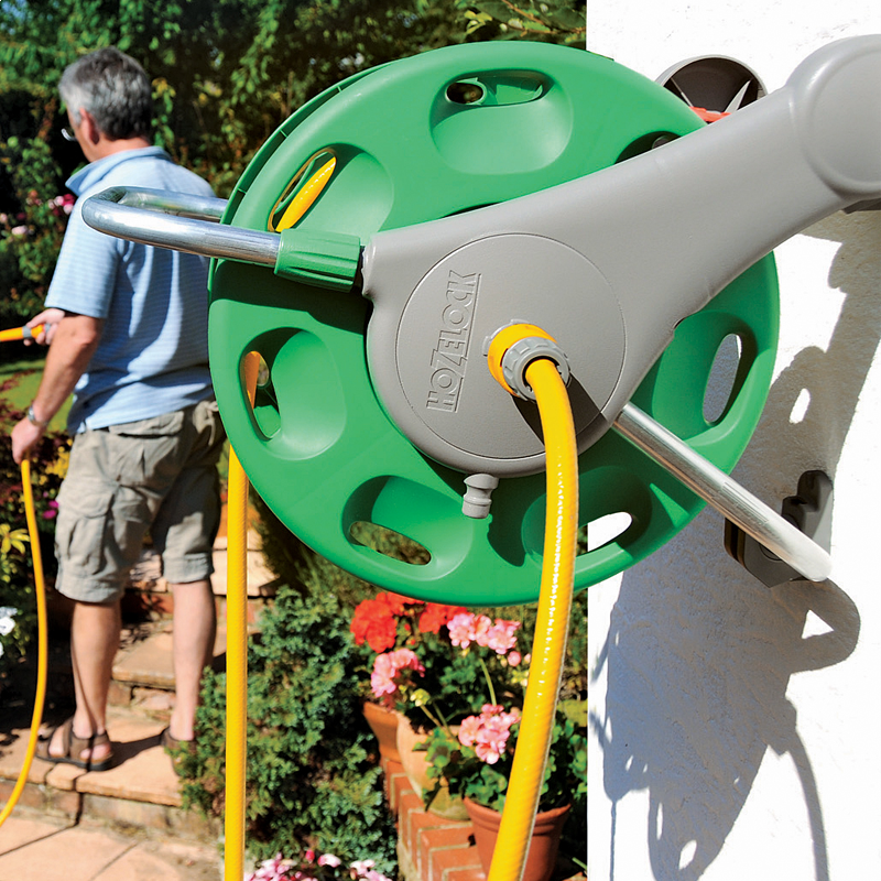 Derulator furtun 2 in 1, capacitate 45m, de sine statator sau cu prindere in perete.