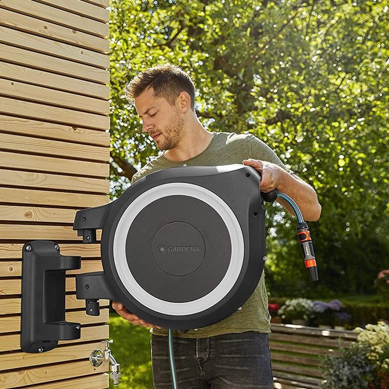 Derulator automat pentru furtun de gradina, echipat cu 25 de metri furtun Gardena, cu diametrul de 12.5 mm (1/2'').
