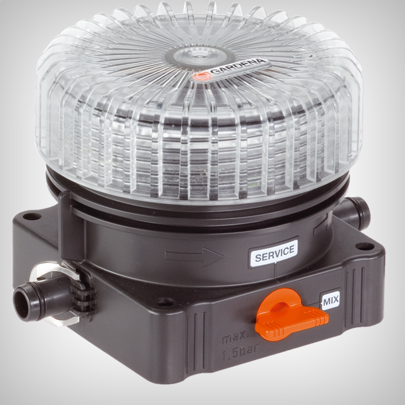 Distribuitorul de fertilizator GARDENA este ideal pentru adaugarea fertilizatorului lichid universal GARDENA (art. nr. 8303-20) in Micro-Drip-System GARDENA.