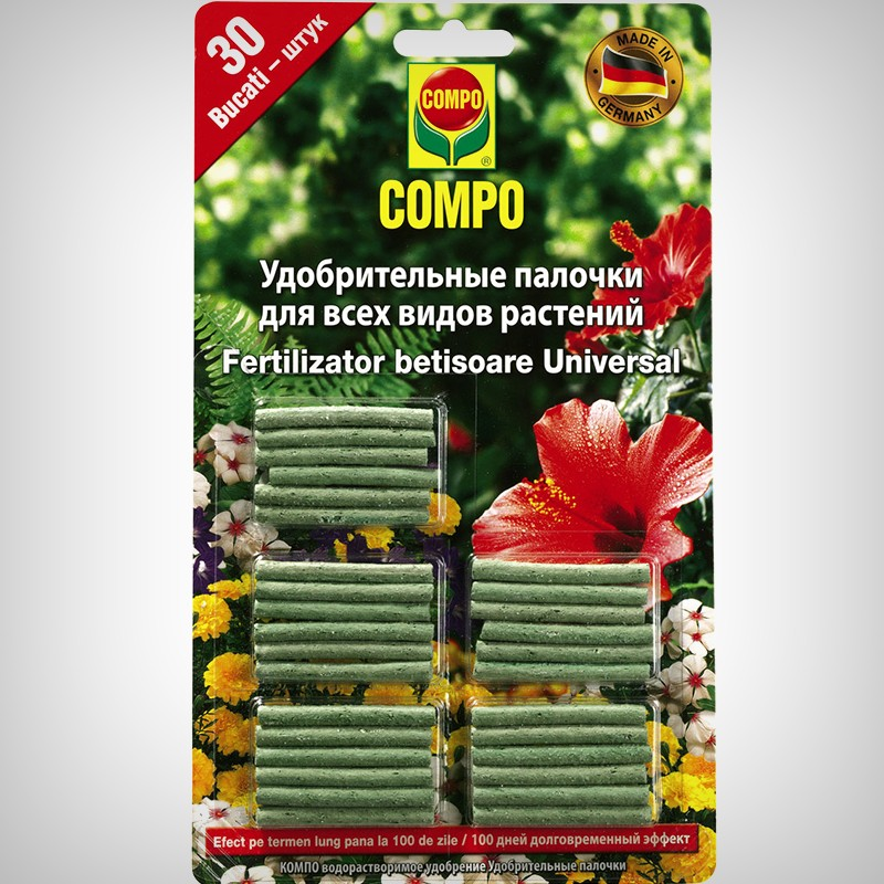 Fertilizatorul universal sub forma de betisoare contine toti nutrientii de baza si micro-elementele necesare pentru a ajuta plantele sa creasca sanatos.