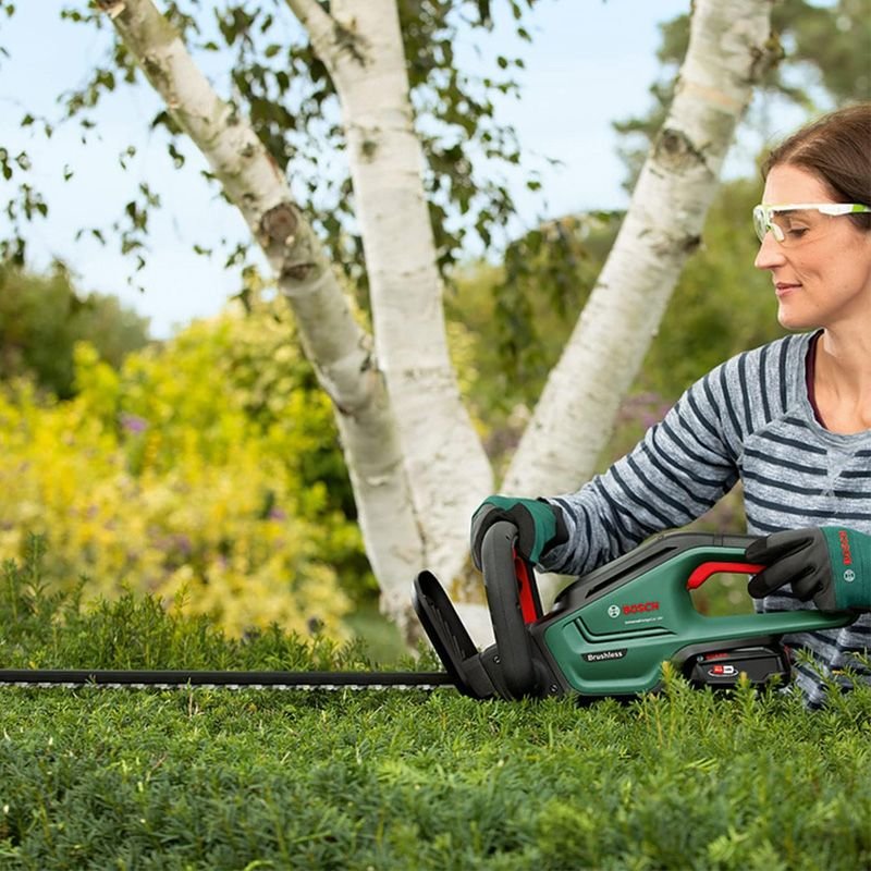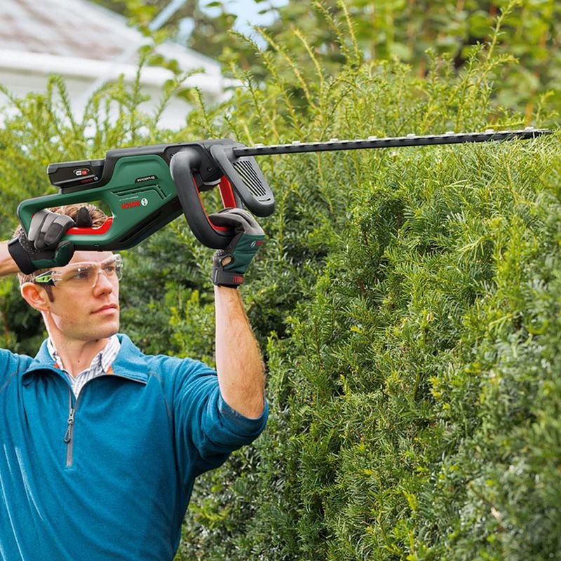 Fierastrau electric cu acumulator pentru toaletarea gardului viu Universal HedgeCut 18V-50 de la Bosch, este adecvata pentru tunderea gardurilor vii de marime medie, cu ramuri al caror diametru ajunge la 20 mm.