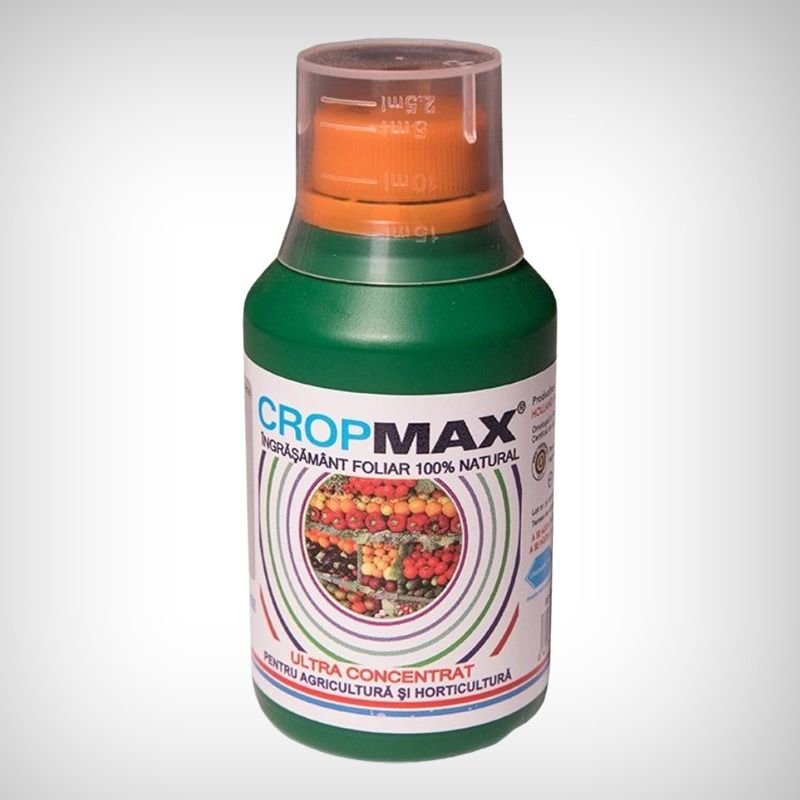 Fertilizant natural, superconcentrat, pentru culturile de flori, legume, pomi fructiferi, vita de vie sau culturi in camp. Fiind un compus 100% organic, se preteaza pentru aplicare in toate culturile, inclusiv in agricultura ecologica si poate fi utilizat atat de profesionisti, cat si de amatori. Cropmax nu lasa reziduuri si nu produce toxicitate.