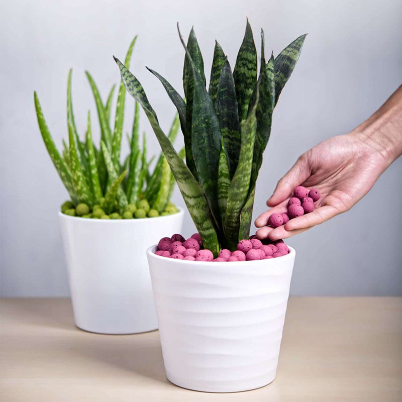 Acest tip de agregat are avantajul de a fi reutilizat. In timp ce pamantul isi pierde proprietatile si trebuie schimbat in mod regulat, granulele de argila pot fi spalate, sterilizate prin fierbere si repuse in ghiveci. Sunt neutre din punct de vedere chimic ceea ce inseamna, pe de o parte ca nu favorizeaza aparitia parazitilor si a daunatorilor, iar pe de alta parte ca nu pot oferi plantelor necesarul de substante nutritive, asa ca va fi necesara suplimentarea cu fertilizanti solubili in apa, specifici plantelor de interior pe care le detineti.