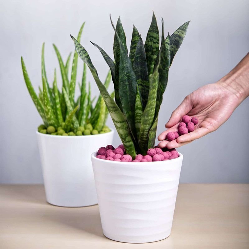 Acest tip de agregat are avantajul de a fi reutilizat. In timp ce pamantul isi pierde proprietatile in timp si trebuie schimbat in mod regulat, granulele de argila pot fi spalate, sterilizate prin fierbere si repuse in ghiveci. Sunt neutre din punct de vedere chimic ceea ce inseamna, pe de o parte ca nu favorizeaza aparitia parazitilor si daunatorii, iar pe de alta parte ca nu pot oferi plantelor necesarul de substante nutritive, asa ca va fi necesara suplimentarea cu fertilizanti solubili in apa, specifici plantelor de interior pe care le detineti.