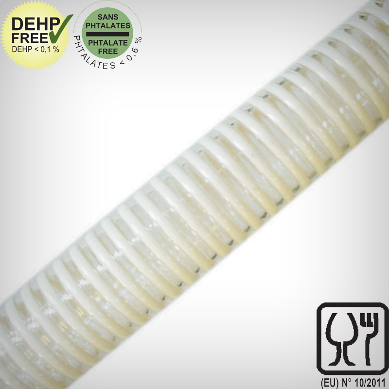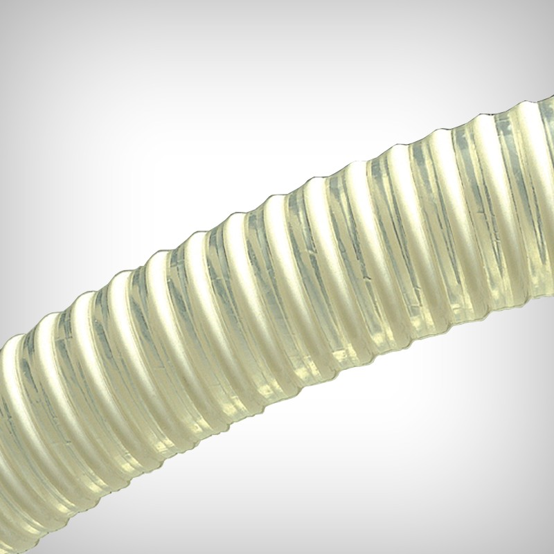 Furtunul este fabricat din PVC suplu, transparent, ranforsat cu o spirala alba antisoc.