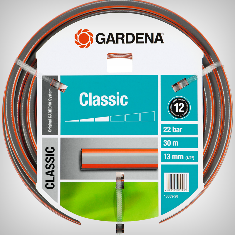 Furtun pentru irigatii Classic de la Gardena in 3 straturi, fabricat din PVC.