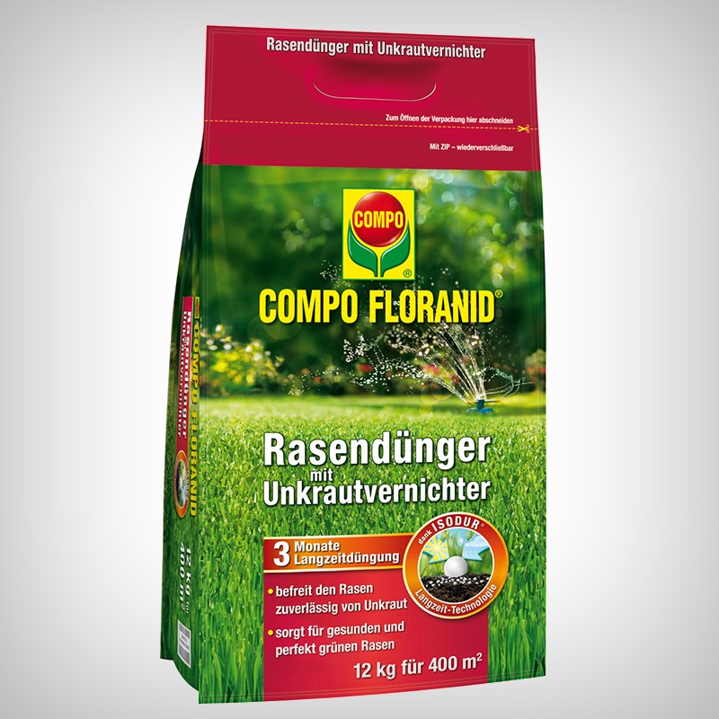 Ingrasamant pentru gazon, cu efect pe termen lung pana la 3 luni, datorita tehnologiei speciale ISODUR. Elibereaza gazonul de buruieni si asigura un gazon sanatos si verde. Este admisa utilizarea in zona caselor si a gradinilor mici. Domenii si dispozitii de folosire autorizate: buruieni dicotiledonate in gazon.