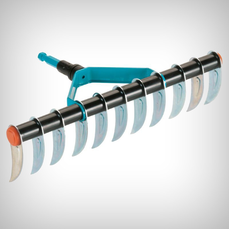 Aerator manual Combisystem GARDENA, pentru indepartarea muschiului si a resturilor vegetale depuse la baza gazonului, cu scopul de imbunatati structura solului, astfel incat aerul, apa si substantele nutritive sa patrunda mai usor la radacina gazonului.