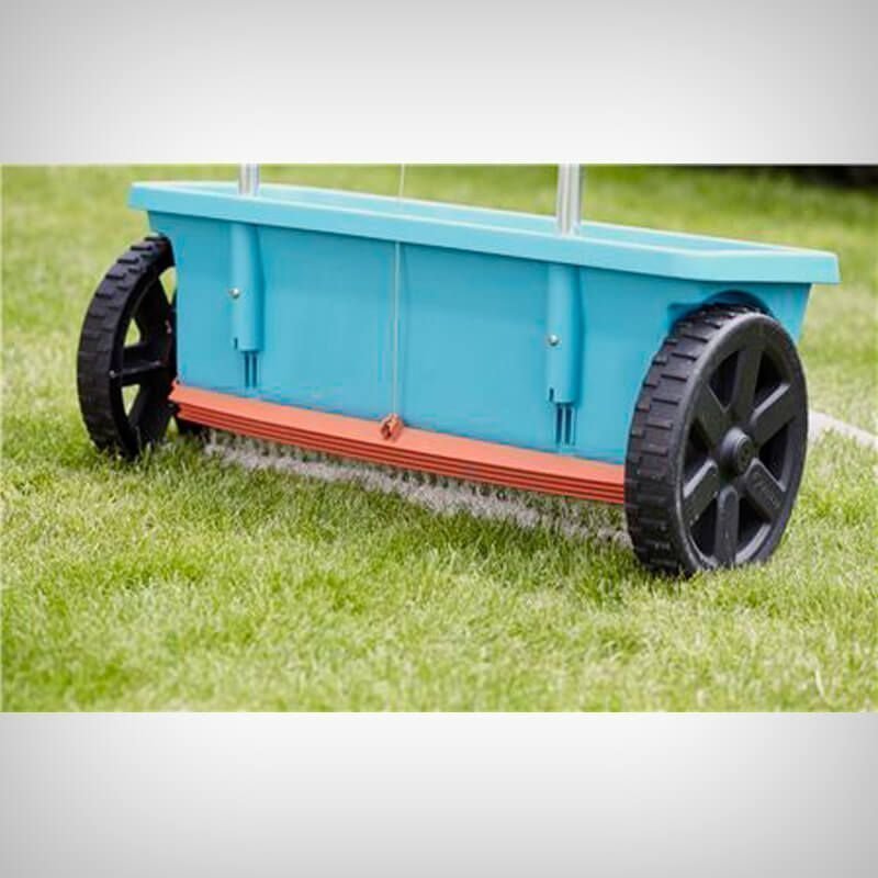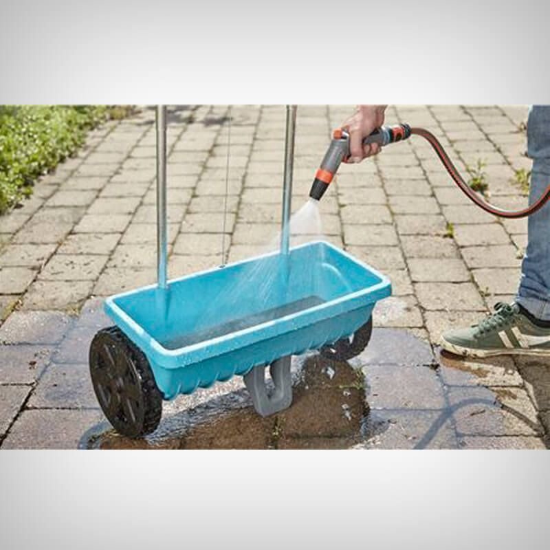 Functia de inchidere-deschidere de pe maner permite setarea cantitatii materialului ce urmeaza a fi imprastiat. Cilindul special de la baza dispozitivului asigura distribuirea uniforma, iar capacul culisant inchide ermetic recipientul, astfel incat materialul sa nu se poata varsa sau scurge dupa utilizare.