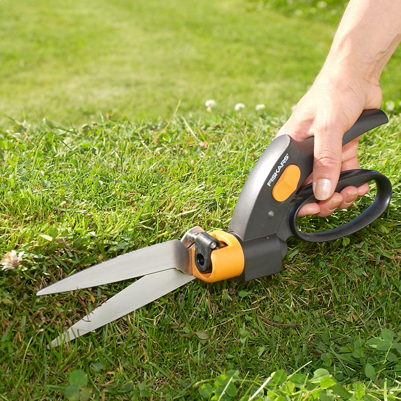 Foarfecele cu servo-mecanism pentru gazon are un unghi de taiere reglabil 360 grade