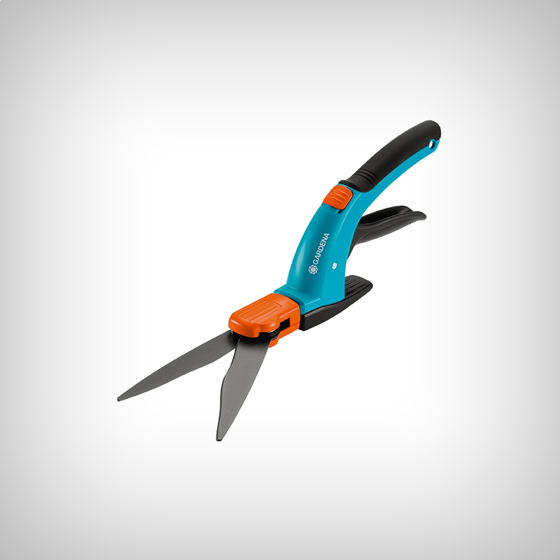 Foarfeca de iarba Comfort de la Gardena, cu mecanism rotativ, care permite toaletarea marginilor de gazon. Poate ajunge usor in zonele inaccesibile din gradina.