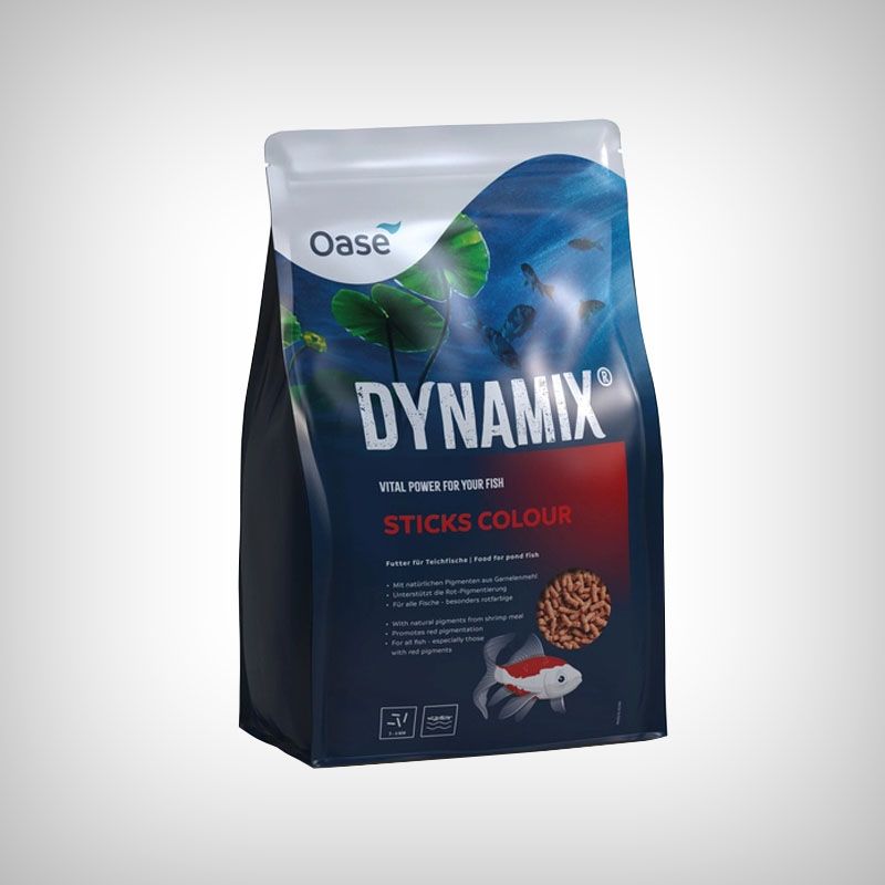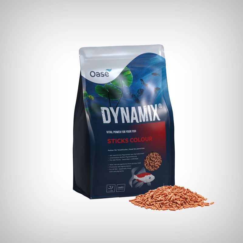 Hrana pentru pesti ornamentali, Dynamix Sticks Colour de la OASE este un complex nutritiv sub forma de peleti, produs din ingredient atent selectionate, care au un triplu efect benefic asupra pestilor: