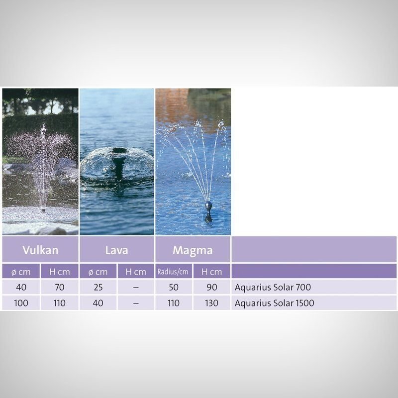 Aripilie filtrului sunt usor de detasat, pompa putand fi amplasata direct la marginea iazului. Fantana este prevazuta cu o extensie tubulara telescopica cu cap rotativ integrat care ii permite alimentarea individuala.