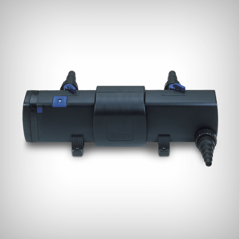 Clarificatorul UV Bitron C de 110 W de la Oase filtreaza apa in iazuri cu volum de pana la 110 mc. Conectat la un sistem complet de filtrare a apei din iaz, clarificatorul UV elimina algele pluititoare, bacteriile si alti agenti patogeni, lasand apa curata si sanatoasa.