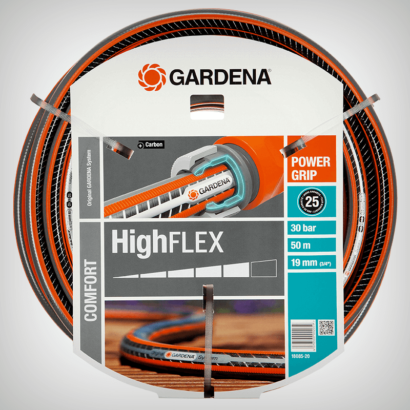 Furtunul de gradina Highflex Comfort de la Gardena are diametrul de 19 mm (3/4'') si lungimea de 50 metri.