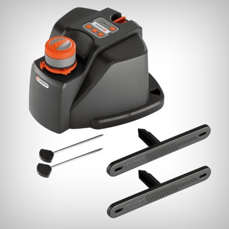 Aspersorul vine echipat cu 2 marcatoare de sol si doi tarusi care permit fixarea sigura si precisa in suprafetele programate pentru irigare.