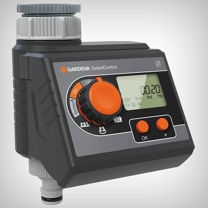 Programarea controlerului Select de la Gardena se face foarte usor, avand capacitatea de a acoperi 5 tipuri diferite de irigare: gazon, gard viu, plante in ghiveci, jardiniere, straturi de flori.
