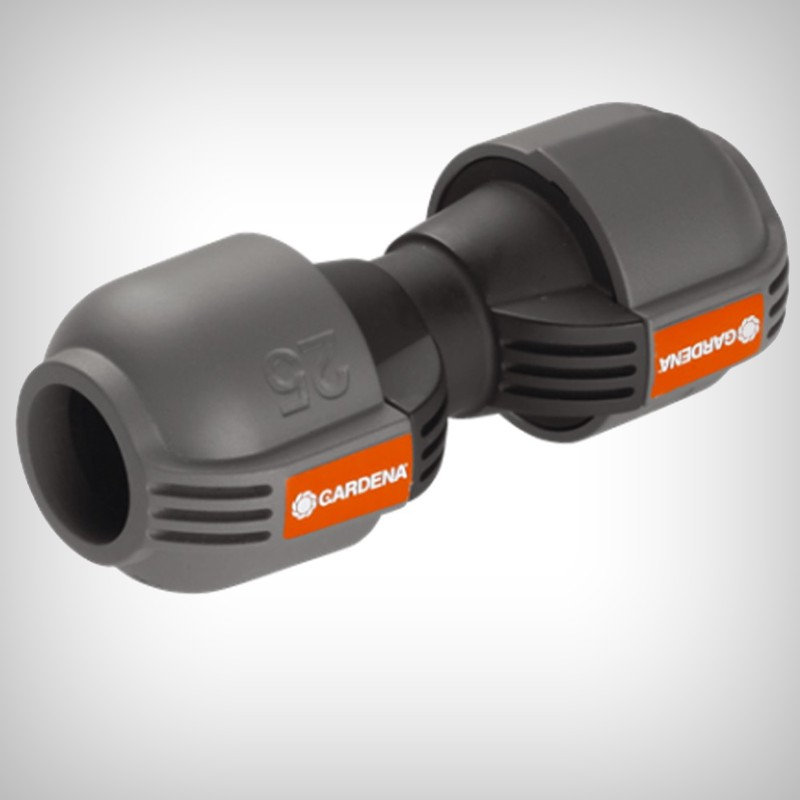Conectorul de 25 mm GARDENA, ca element al sistemului de aspersoare GARDENA, are rolul de extindere a conductei de conectare. Prin intermediul tehnologiei simple de conectare "Quick & Easy", brevetata, asamblarea sau dezasamblarea conductei se realizeaza fara unelte, prin simpla rotire cu 140 grade a fitingului insurubat.