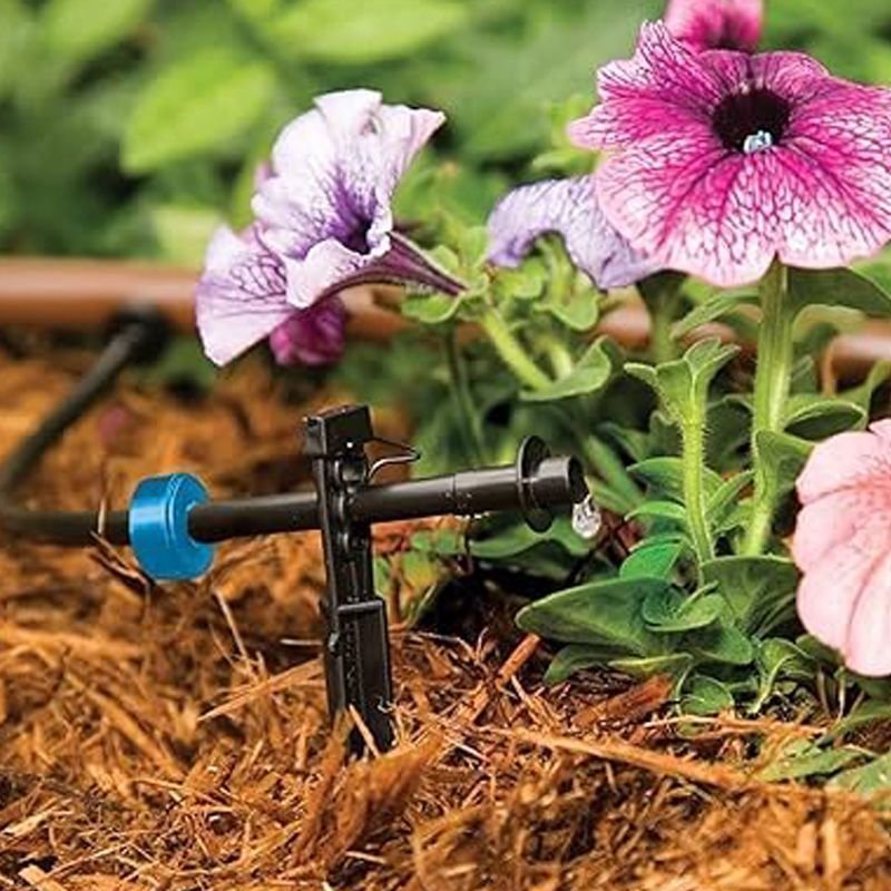 Cu ajutorul duzelor picuratoare este asigurata distributia uniforma a apei, chiar si pe terenurile cu denivelari. Aceste accesorii sunt prevazute cu o difragma de compensare a diferentei de presiune care asigura un debit constant, indiferent de pozitia duzei fata de punctul in care tubul este alimentat cu apa. Plantele beneficiaza de o cantitate precisa de apa direct la radacina.