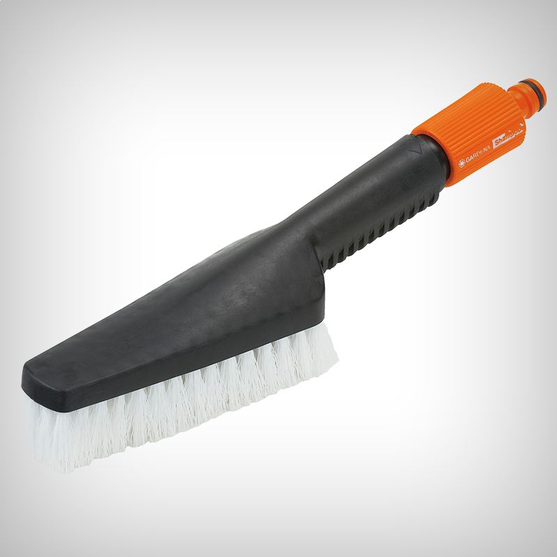 Perie manuala Gardena pentru curatarea uneltelor de gradina, cizme, canistre etc. Este echipata cu conector OGS (Original Gardena System), putand fi conectata la sursa de apa.