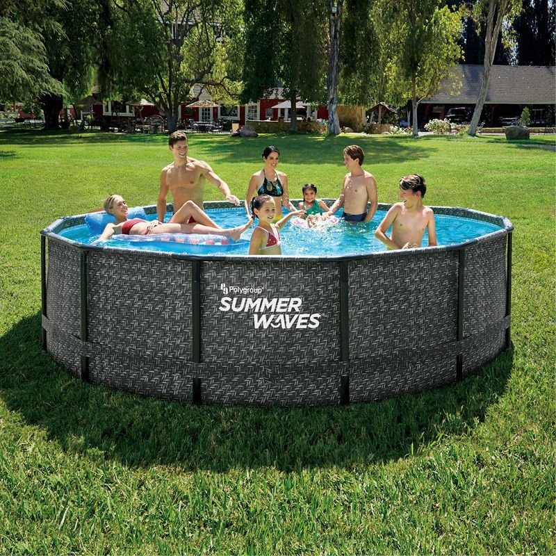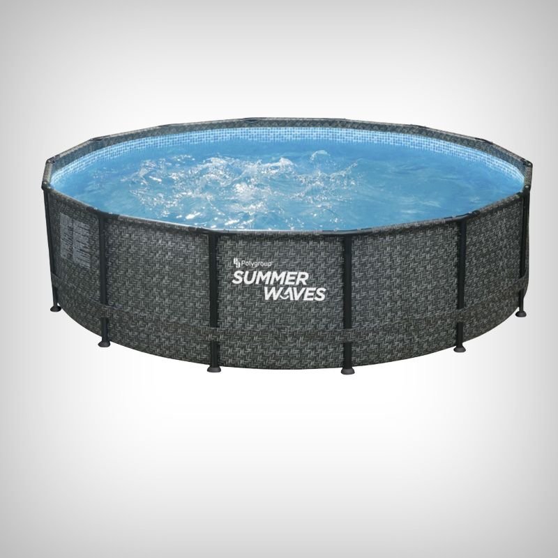 Set piscina rotunda Summer Waves Activ Frame Dark Herringbone cu diametru 4,57m si adancime de 1,07cm.