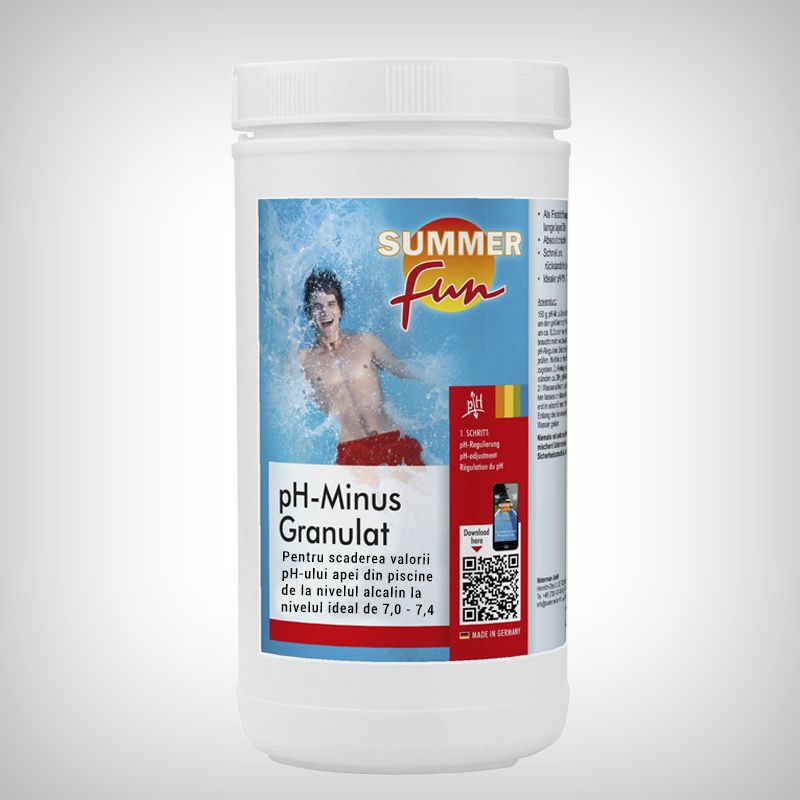 Pentru scaderea valorii pH-ului utilizati compusul chimic pH Minus granulat, pe baza de sulfit acid de sodiu.