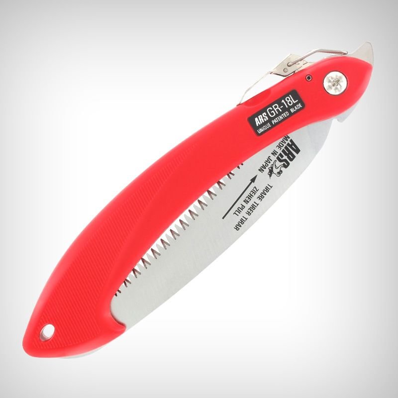Fierastraul pliabil GR-18L, fabricat in Japonia, este prevazut cu o lama foarte ascutita, usor curbata si conica, patentata de ARS Corporation sub denumirea de ARS Turbocut. Lamele Turbocut au dintii foarte duri si extrem de ascutiti.