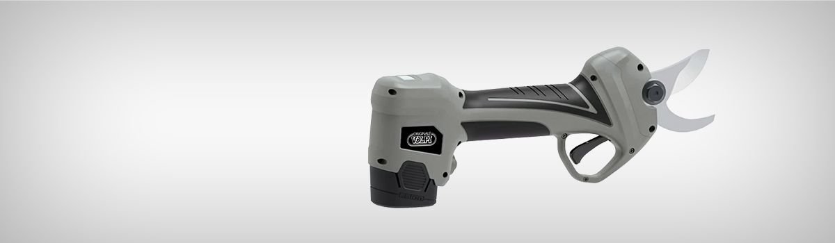 Foarfeca electrica pentru pomi si vie Volpi Kamikaze 360 are acumulatorul montat in maner, renuntandu-se la acumulatorul detasabil.