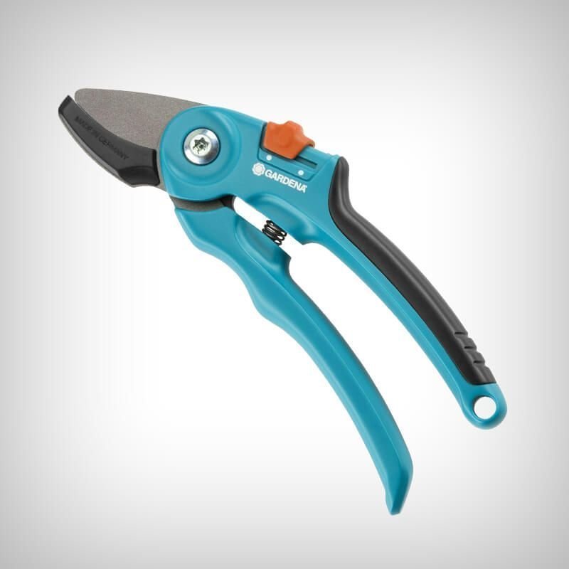 Foarfeca gradinar de tip nicovala de la Gardena este perfecta pentru taierea ramurilor batrane, uscate, dar si pentru ramurile subtiri.
