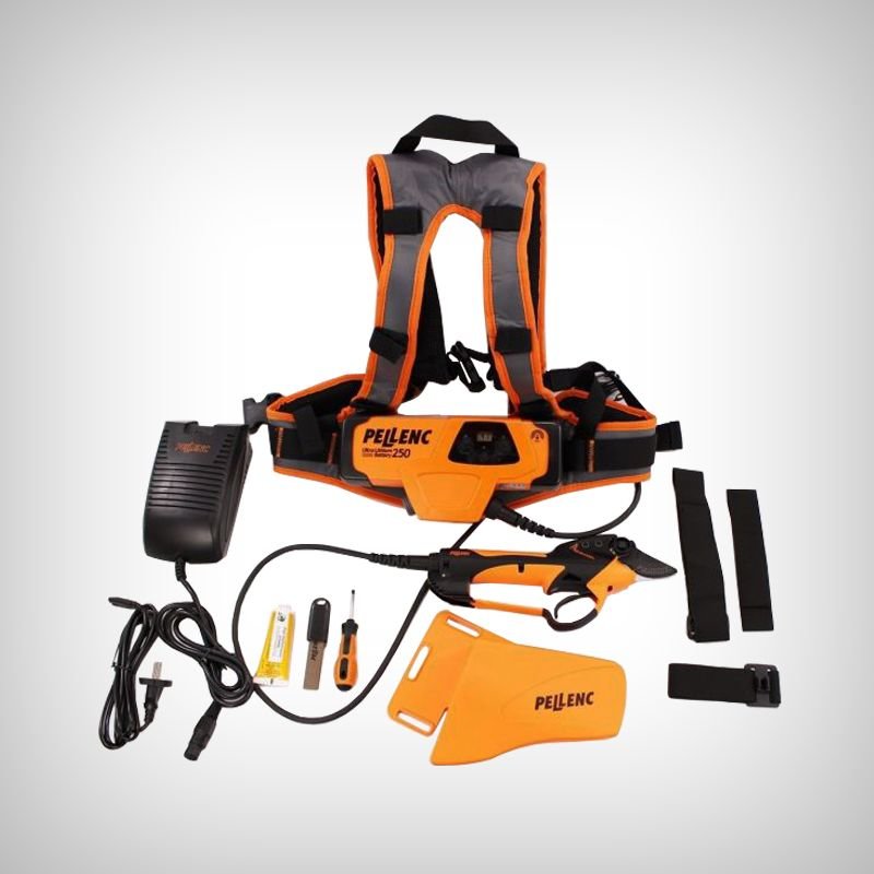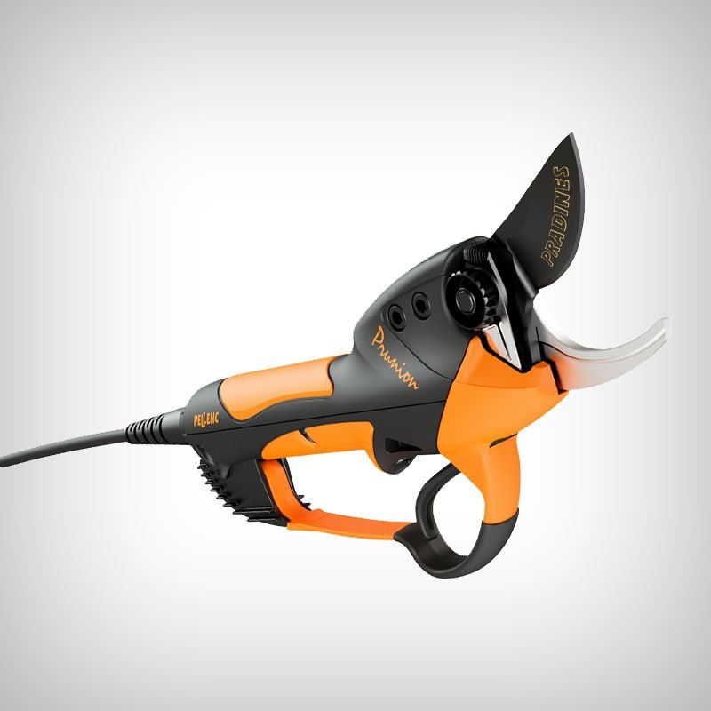 Foarfeca electrica pentru pomi Prunion 250 fabricata de Pellenc in Franta. Este destinata lucrarilor intensive de taieri, pentru suprafete mari de pomi.