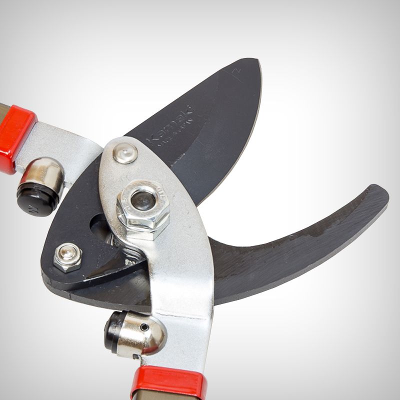 Sistem de taiere bypass. Lamele sunt fabricate din otel teflonat care asigura o taiere curata si rapida, fara a rani tesutul lemnului. Diametrul maxim de taiere este de 45 mm. Foarfeca este prevazuta cu amortizoare cauciucate care absorb vibratiile in timpul taierii.