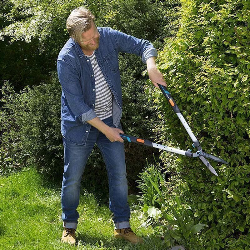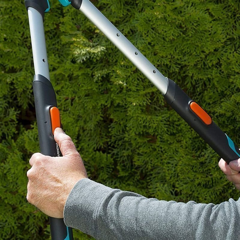 Foarfeca pentru gard viu cu manere telescopice de la Gardena are o serie de caracteristici practice.