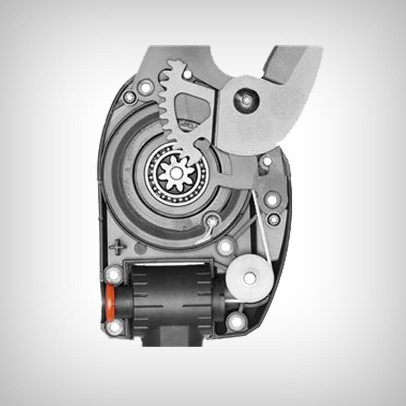 Foarfeca dispune de un mecanism intern de transmisie care impiedica prinderea în ramuri în timpul procesului de taiere. Iar cablul de transmisie din otel garanteaza o taiere usoara a ramurilor cu un diametru de pana la 32 mm.
