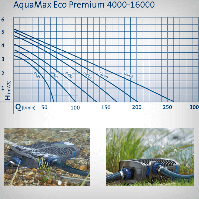 Pompa submersibila pentru cascade si cursuri de apa cu debit maxim de 17000 de litri, AquaMax Eco Premium 17000 beneficiaza de un design inovator si un consum redus de energie.