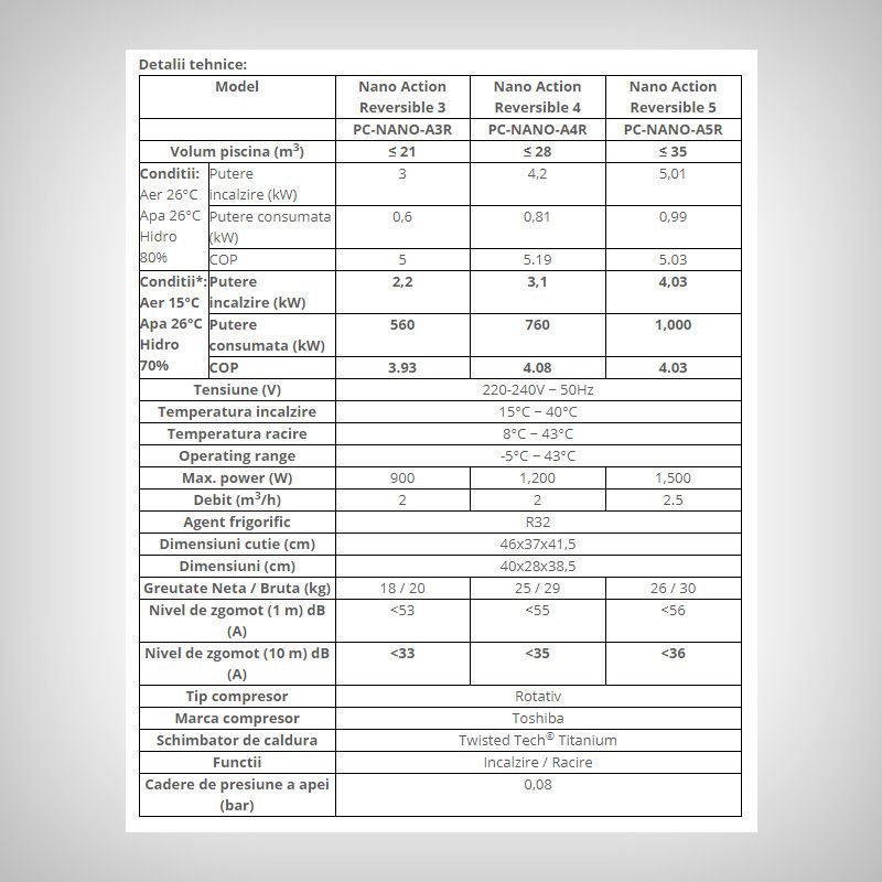 Pompa pentru incalzirea apei din piscina Nano Action 5 Reversible este potrivita pentru piscinele supraterane de dimensiuni mici si medii.