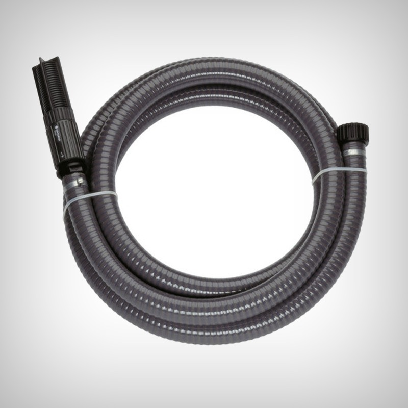 Furtun ranforsat de suctiune spiralat, rezistent la vid, gata pentru conectarea directa la pompa.