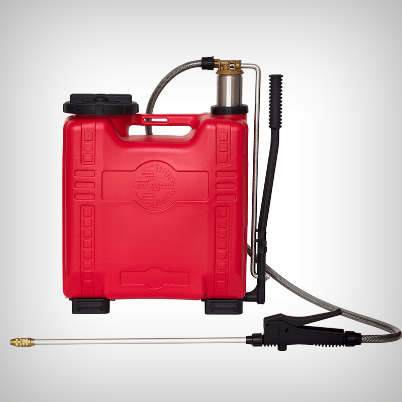 Pompa pentru stropit pomii Dal Degan cu pompant din inox. Rezervor din polietilena tratata anti-UV, cu capacitate de 16L. Zona transparenta a rezervorului este gradata, pentru o dozare precisa si facila. Gura de umplere a acestuia este echipata cu filtru pentru particule.
