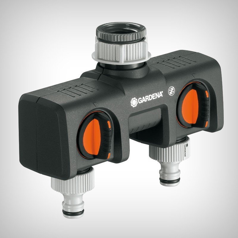 Iesirile sunt complet ajustabile. La conector pot fi montate doua programatoare de apa GARDENA.