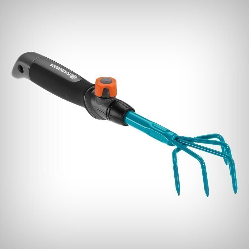 Scormonitorul cu cinci colti Combisystem Gardena are o latime de lucru de 7 cm si este optim pentru afanarea solului de pe straturi si din cutiile de flori.