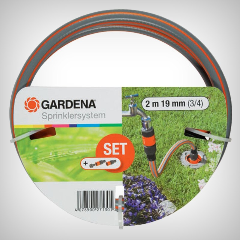 Continut: 1 conector de robinet cu adaptor pentru robineti cu filet de 26,5 mm (G 3/4) si de 33,3 mm (G 1), 2 conectori de sistem pentru furtun "Profi" debit maxim pentru furtunurile de gradina de 19 mm (G 3/4"), 2 m de furtun Classic de 19 mm GARDENA.