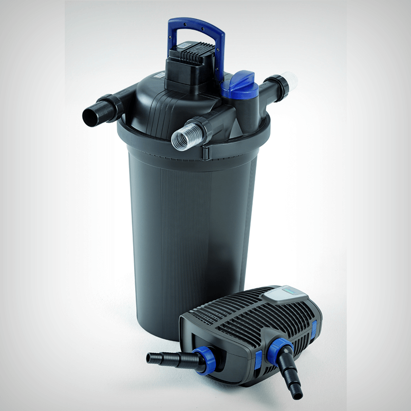 Setul combina filtrul cu presiune FiltoClear cu sistem integrat UVC si pompa cu filtru AquaMax Eco Premium 12000. Este adecvat inclusiv pentru amenajarile acvatice in care apa circula la diferite inaltimi, putand fi montat pe circuitul de alimentare a unei cascade sau a unui curs de rau la inaltime mai mare.