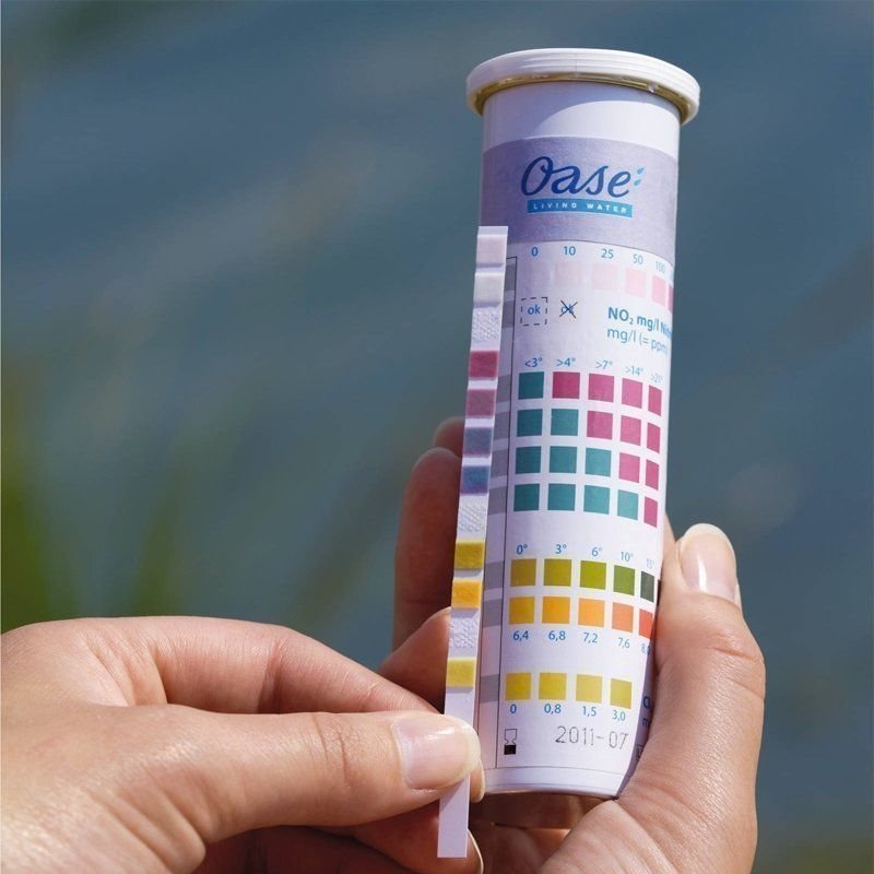 Testare rapida si simpla pentru cei mai importanti 6 paramentri ai apei dintr-un iaz: PH, GH, KH, NO₂, NO₃, CL₂.